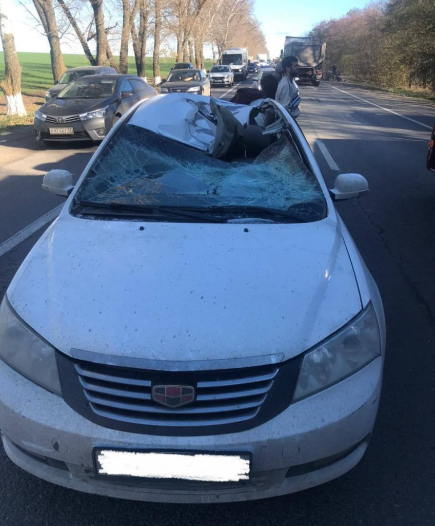 Один из фрагментов оси прицепа угодил в легковушку Geely Emgrand, которая ехала по встречной полосе. Удар пришелся в стекло и крышу машины в районе водителя.