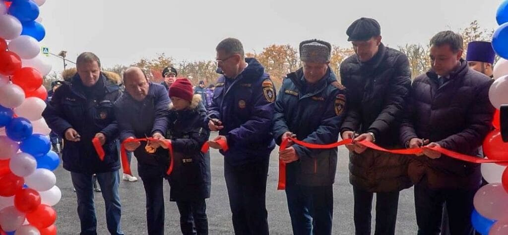 Красную ленту разрезали куратор этого проекта заместитель донского губернатора Вадим Артемов, глава райадминистрации Виктор Гуснай, директор департамента по ГО и ЧС Павел Нудгин, заместитель начальника донского главка МЧС России Евгений Никитин, председатель совета ВДПО Ростовской области Василий Пилипец и глава администрации сельского поселения Алексей Косарев.