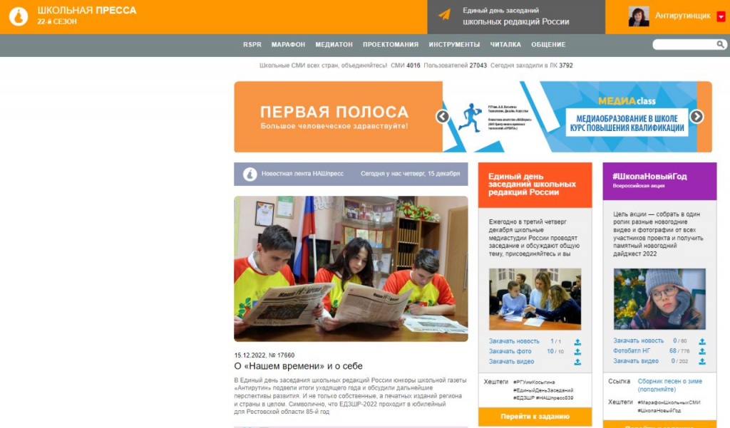 Работает редакция школьной газеты «Антирутин» совсем по-взрослому: с анализом уже достигнутого и дальнейших перспектив как своего издания, так и медиасферы региона. Итоги уходящего года «антирутинщиков» порадовали: работали ростовские юнкоры плодотворно и получили заслуженное профессиональное признание