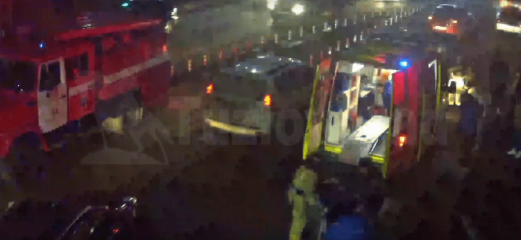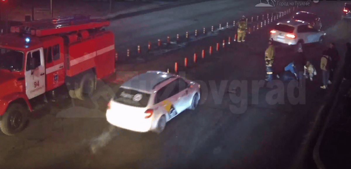 Пожарные были с пострадавшей вплоть до приезда "скорой", а после помогали медикам в эвакуации девушки посреди оживленной дороги. Стоп-кадр видео с сайта "Тузловград".