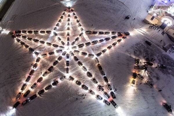Какую именно фигуру будут составлять из автомобилей, пока держат в секрете. На прошлый юбилей — 75-летие освобождения Новочеркасска от немецко-фашистских захватчиков – около Вознесенского собора выстроили из машин огромную звезду, а в честь других праздников новочеркасцы «рисовали» елочку, олимпийские кольца и даже пламя Вечного огня.
