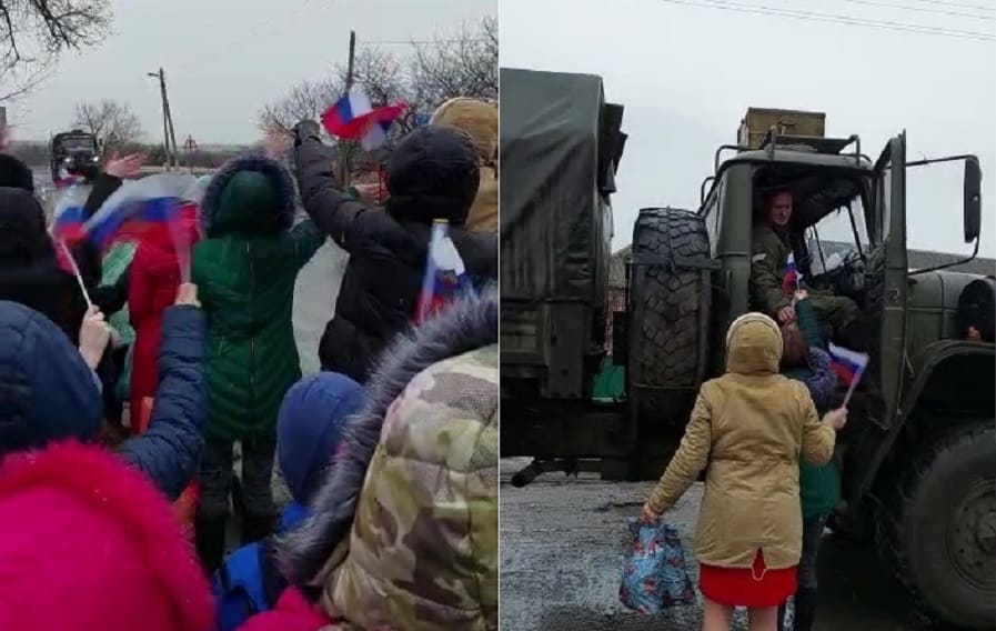 Так, проезжавших в мариупольском направлении российских военных ханжоновские школьники поздравляли еще несколько часов.