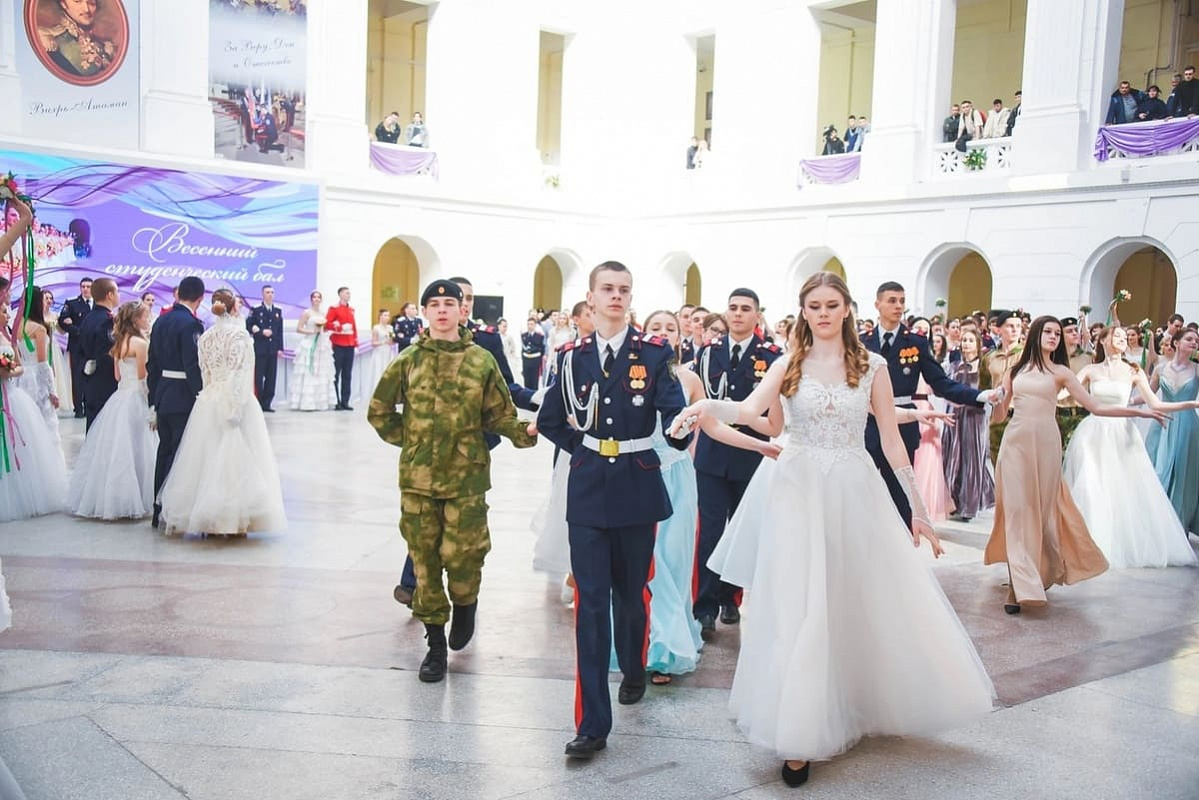 Под сводами крытого двора Южно-Российского государственного политехнического университета (НПИ) имени Матвея Платова в Новочеркасске собралось много парней в парадных казачьих мундирах и девушек в элегантных бальных нарядах.