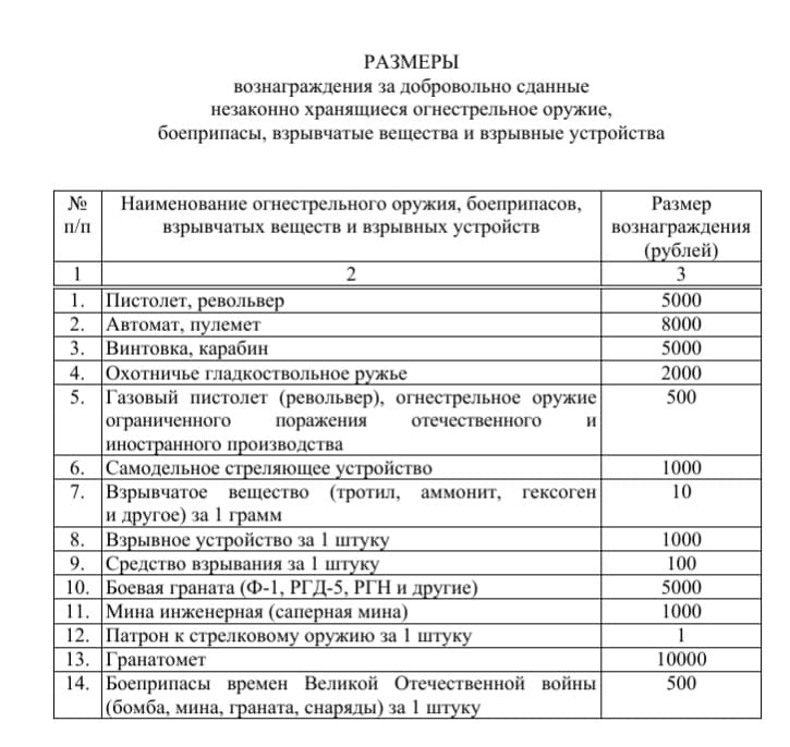Пистолет, револьвер, винтовку и карабин оценили в 5000 рублей. В такую же стоимость оценили боевые гранаты (Ф-1, РГД-5, РГН и другие).
