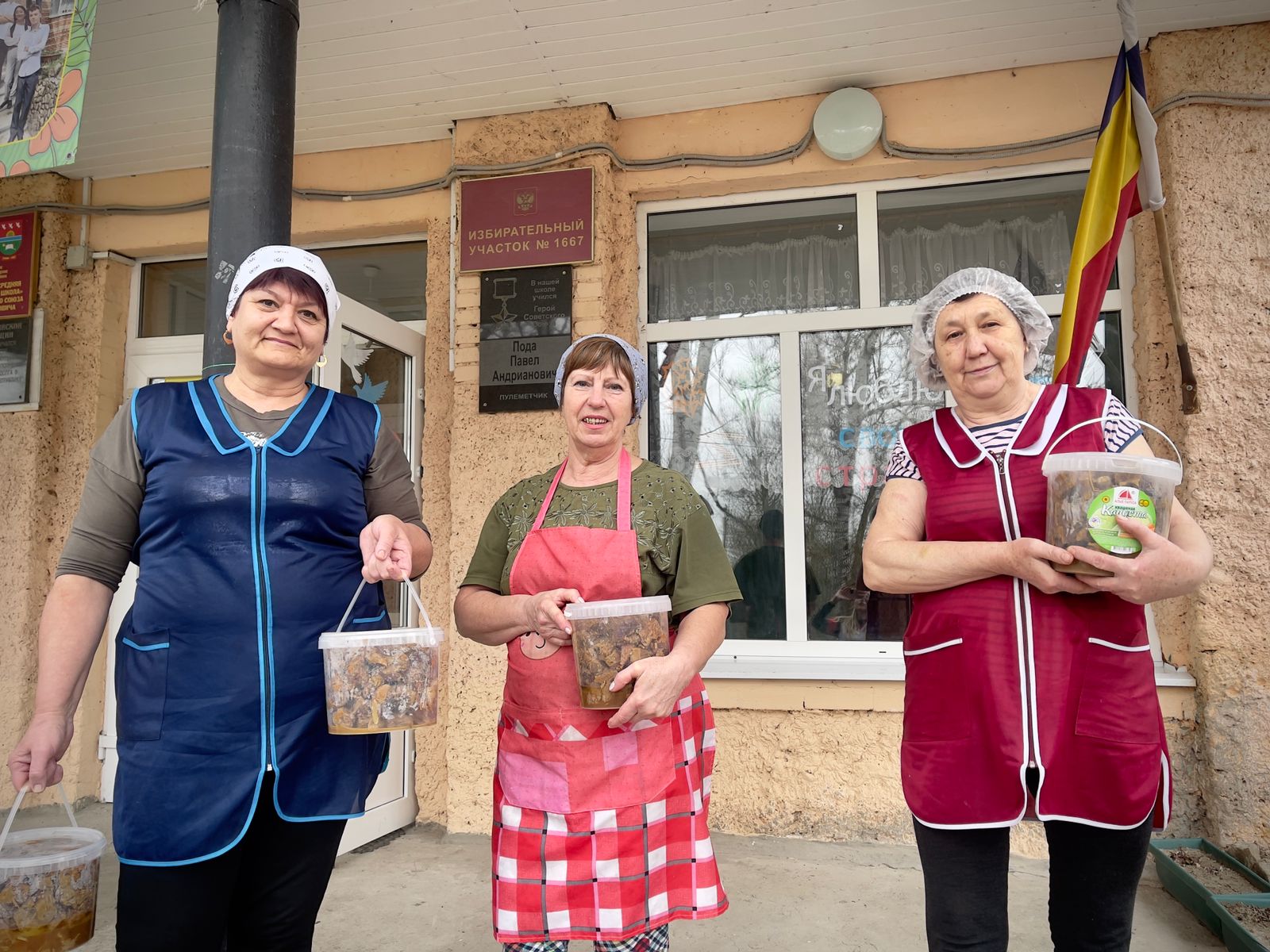 Перед отправкой гуманитарной помощи Татьяна Викторовна (по номеру ее телефона 8-928-100-45-35 принимаются перечисления для «Группы помощи нашим воинам «Сила добра») поблагодарила всех, кто поучаствовал в подготовке нового рейса в зону СВО. В их числе — школьные повара, приготовившие для воинов-земляков много вкусностей…