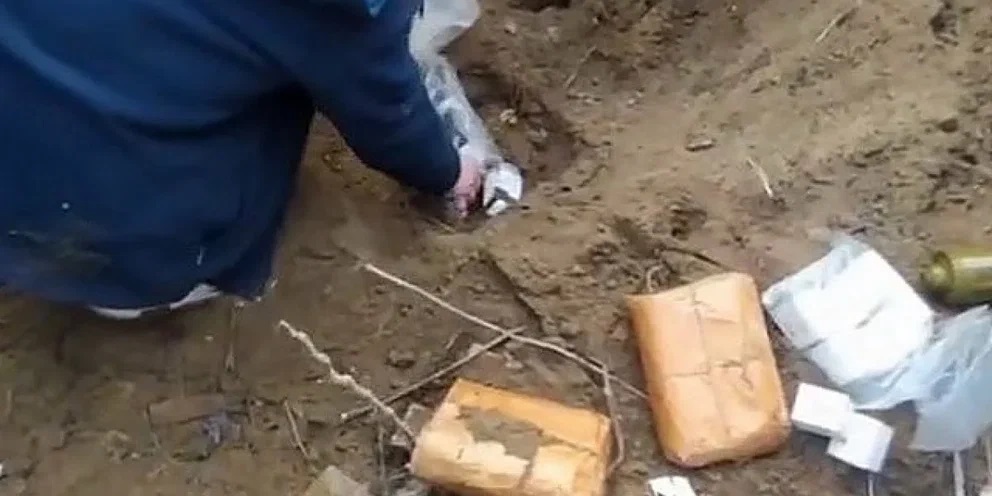 Один из схронов с взрывчаткой, обнаруженный в ходе обысков у членов "Союза участников АТО Мелитополя". Источник фото: rfnovosti.ru.