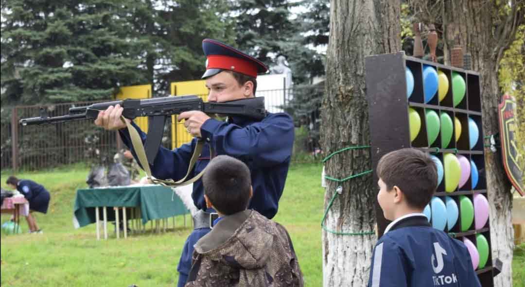 Молодые казаки делились мастерством владения шашкой, нагайкой, соревновались в метании дротиков, разборке-сборке макета автомата Калашникова, стрельбе из пневматических винтовки и пистолета.