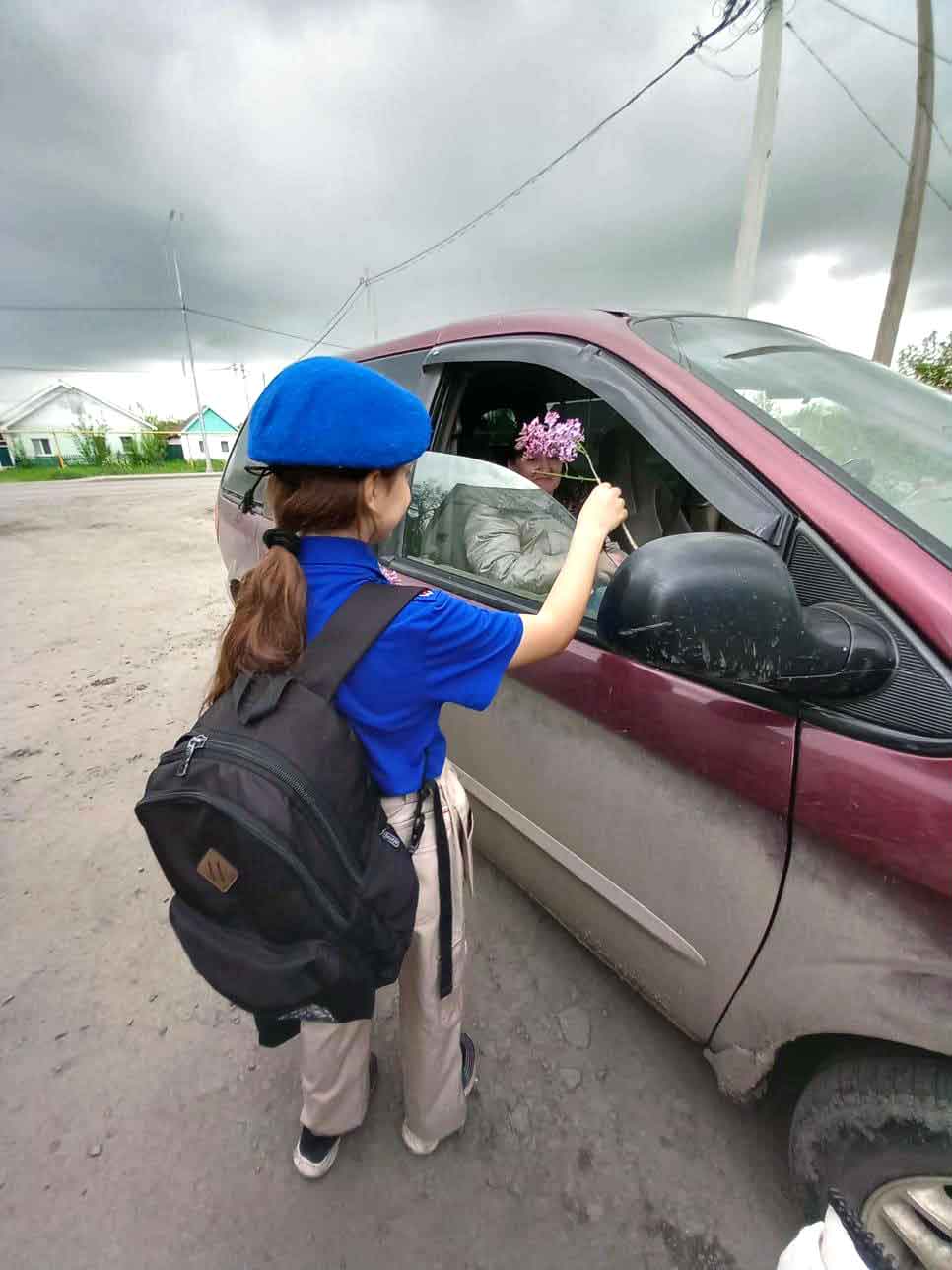 Так, акция «Цветок добра» была инициативой членов школьного юнармейского отряда Алины Ткачёвой, Кристины Яценко, Виктории Куринной и Софии Тамразян. Они приготовили букеты сирени и весенних цветов, дарили их всем, кого встречали... Присоединились юнармейцы и к флешмобу «Сердце солдату», который провели в поддержку бойцов, участвующих в СВО.