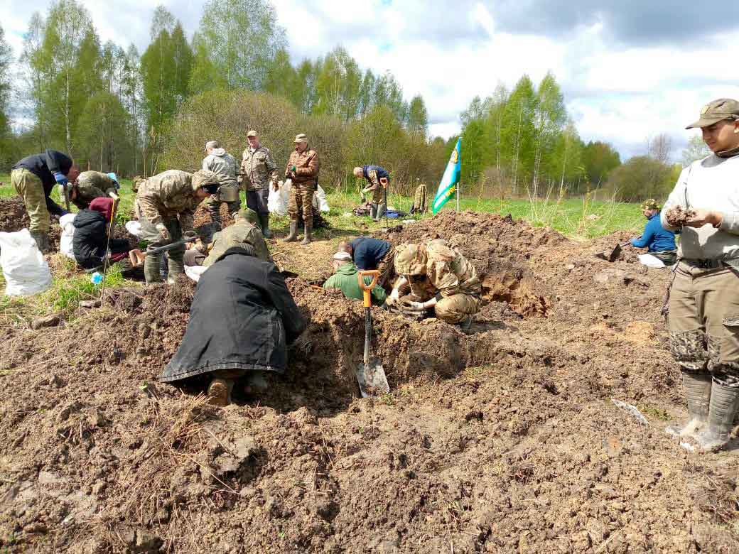 И вот теперь – совместная работа с новгородскими коллегами в Холмском районе Новгородчины. В урочище Мазуры поисковики обнаружили давно позабытое братское захоронение. Эксгумацию останков бойцов и командиров провели силами поисковиков отрядов «Пирамида», «Мемориальная группа» и «Поколение». Обнаружены 18 солдатских медальонов, 5 из которых, к сожалению, оказались пустыми, 3 прочитаны, а 10 переданы на экспертизу.