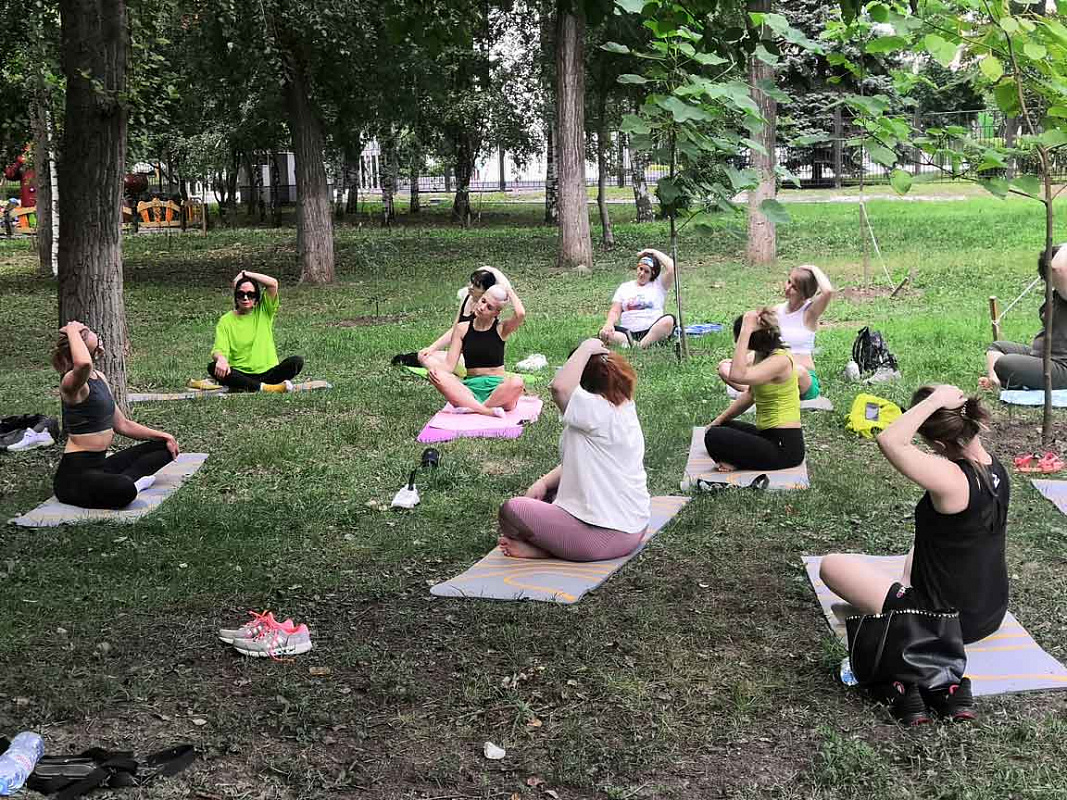 В занятии адаптивным пилатесом прямо на лужайке ростовского парка имени Н. Островского участвовали два десятка женщин из сообщества «Ловим эмоции».