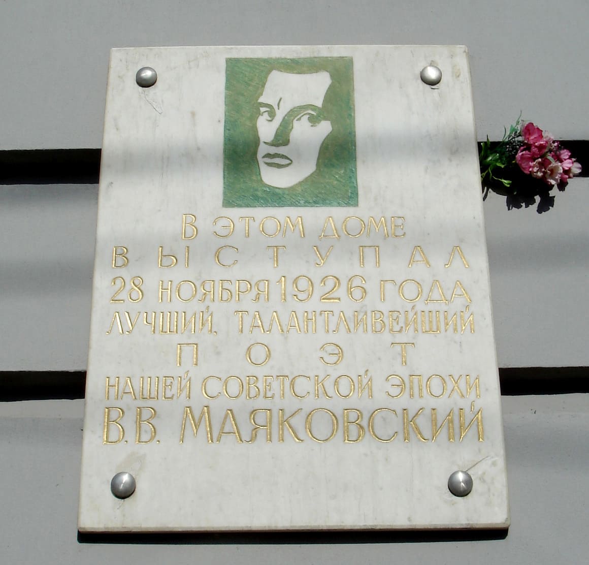 С 1914 по 1927 год Владимир Маяковский тринадцать раз побывал в донской столице. Газета «Приазовский край» писала о его первом визите: «Маяковский хочет создать песни сегодняшнего дня, песни для толпы. Горячий призыв юного поэта подкупил аудиторию (наполовину тоже юную), как подкупает всякий призыв в борьбе за новое». За худобу и высокий рост ростовские журналисты назвали его чеховской фразой: «Не человек, а погребальные дроги, поставленные стоймя».
