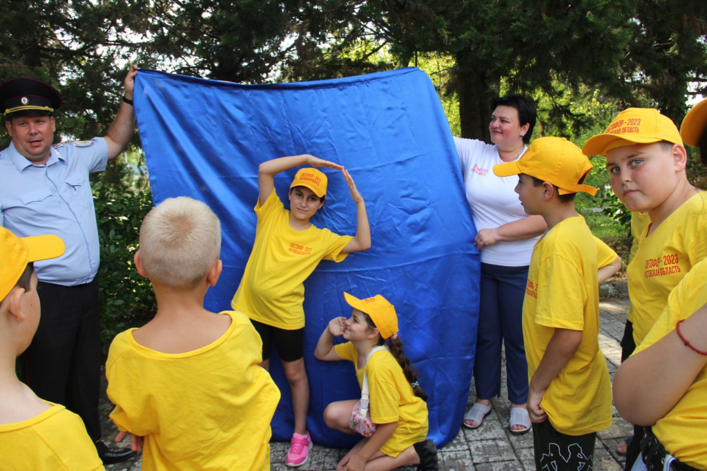 В рамках профильной смены «Светофор-2023», открытой донскими организаторами в Краснодарском крае, проведены «Веселые старты» и игра «Дорожные знаки».