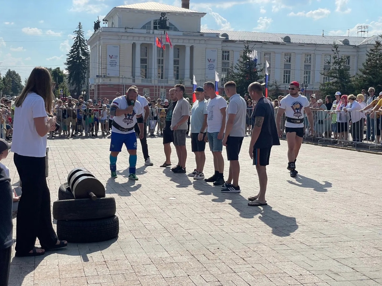 – Среди зрителей, – рассказал Михаил Иванов «Нашему времени», – богатыри выбрали 6 желающих посоревноваться за звание народного богатыря Орловщины в таких упражнениях, как «Богатырское коромысло» (150 килограммов), «Богатырская прогулка» (со снарядами весом по 70 килограммов в каждой руке) и «Богатырская тяга» снаряда «Ось Аполлона» весом 110 килограммов прямым хватом. Силачам-любителям мы вручили фирменные футболки с символикой «Сильнейшей нации мира» и фестиваля «Русское лето. Za Россию».