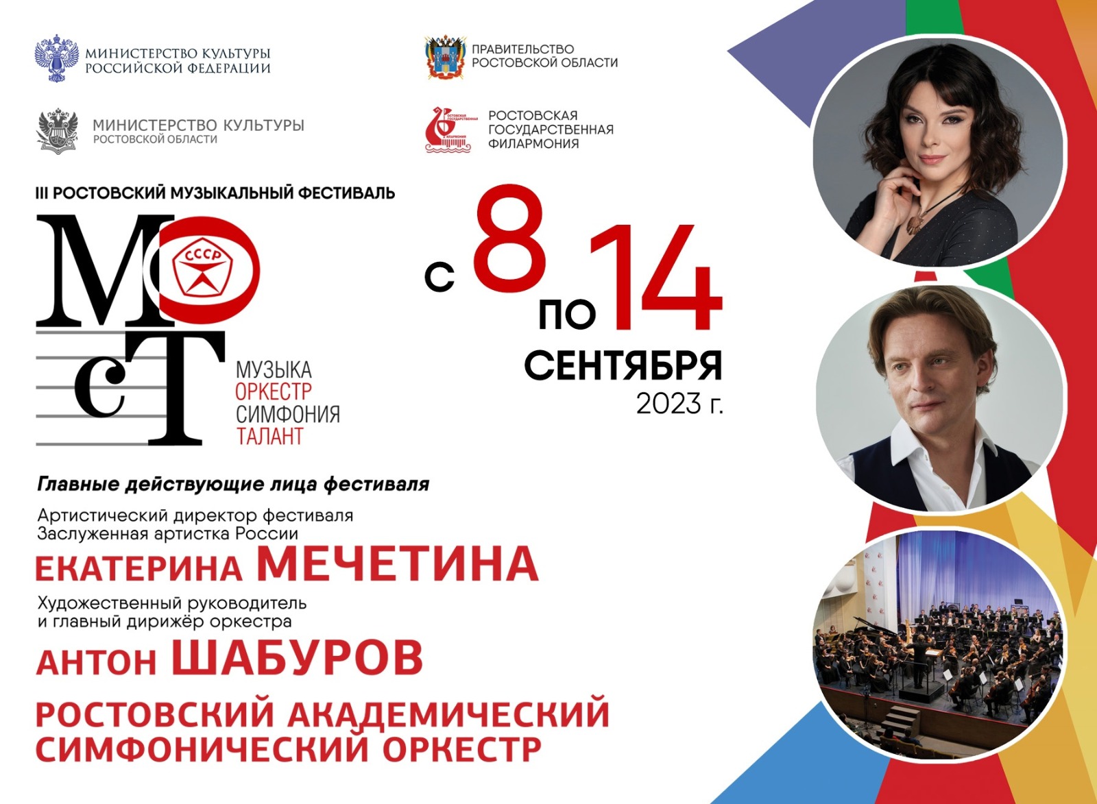 С пятницы, 8 сентября, и вплоть до следующего четверга, 14 сентября, в донской столице пройдет фестивальная серия концертов, на которых вместе с Ростовским академическим симфоническим оркестром выступят известные российские артисты и коллективы. Выступления и творческие встречи в рамках фестиваля пройдут на десяти площадках: кроме Ростовской государственной филармонии, выступления и мастер-классы запланированы в таганрогском концертном зале «Олимп», ростовском Зеленом театре в парке Революции, в Центре истинных ценностей РО и даже на сцене теплохода.