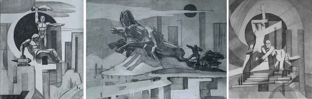На конкурсе Екатерина представила триптих "Достопримечательности Ростова-на-Дону" ("Змиевская балка", памятники "Стачке" и "Тачанка").