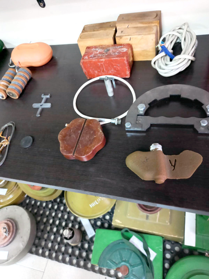 В учебном классе центрспаса множество мин-трофеев, привезенных саперами из командировок. Здесь так называемые мины-воланчики, сбрасываемые беспилотниками, мины, срабатывающие при нажатии на них, гранаты разной модификации, противопехотные и противотанковые мины. Нашлось место и «лепестку» – коварной мине. Коварной, потому что не спрятана в земле, а лежит на поверхности. Чтобы произошел взрыв, достаточно даже небольшого веса. Наступит на такую кошка или собака – и «лепесток» рванет. В зоне СВО часто попадаются собаки с оторванной лапой – результат действия «лепестка». Есть среди трофеев морская мина, напоминающая по виду огромную древнюю амфору.