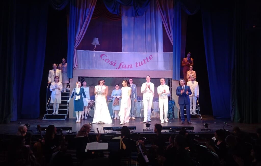 Для постановки была выбрана камерная сцена, где постановка спектакля в буффонадном стиле выглядит очень органично. «Так поступают все» или по-итальянски Cosi fan tutti – одна из трех знаменитых опер, которые были написаны Моцартом на либретто Лоренцо да Понте. Это одна из самых частых моцартовских постановок, наряду с «Дон Жуаном» и «Свадьбой Фигаро». Для того, чтобы представить ее на ростовской сцене была приглашена Мария Фомичева – победитель Международного конкурса молодых режиссеров «Нано-Опера». Это ее первая работа, которая до этого была показана в Большом театре. Мария постоянно работает в детском музыкальном театре Натальи Сац в Москве – примечательно, что там она поставила спектакль «Сны Каштанки» по мотивам произведения нашего земляка Антона Павловича Чехова.