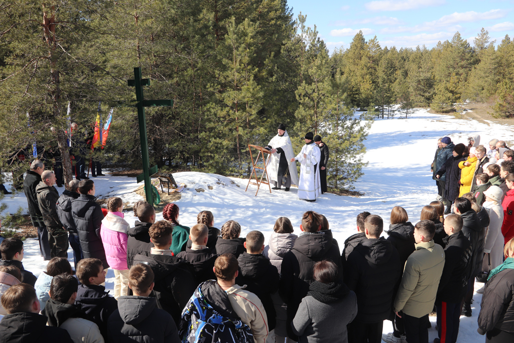 Настоятель храма Архистратига Михаила иерей Роман Митяшин провёл заупокойную литию, и к братской могиле взрослые, дети возложили цветы и почтили память погибших в годы гражданской минутой молчания.