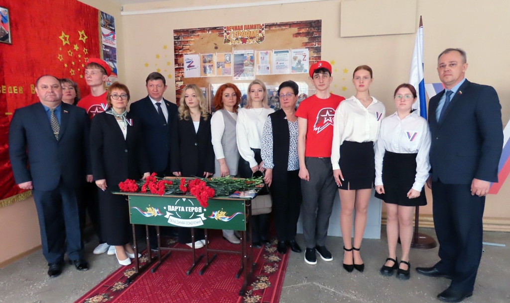 Парту Героя Владислава Медведева в школе №9 Волгодонска открыли его вдова и дочь.