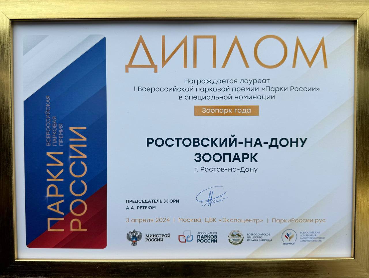О том, что Ростовский зоопарк стал лауреатом Первой Всероссийской парковой премии «Парки России», сообщил в своем телеграм-канале Алексей Логвиненко.