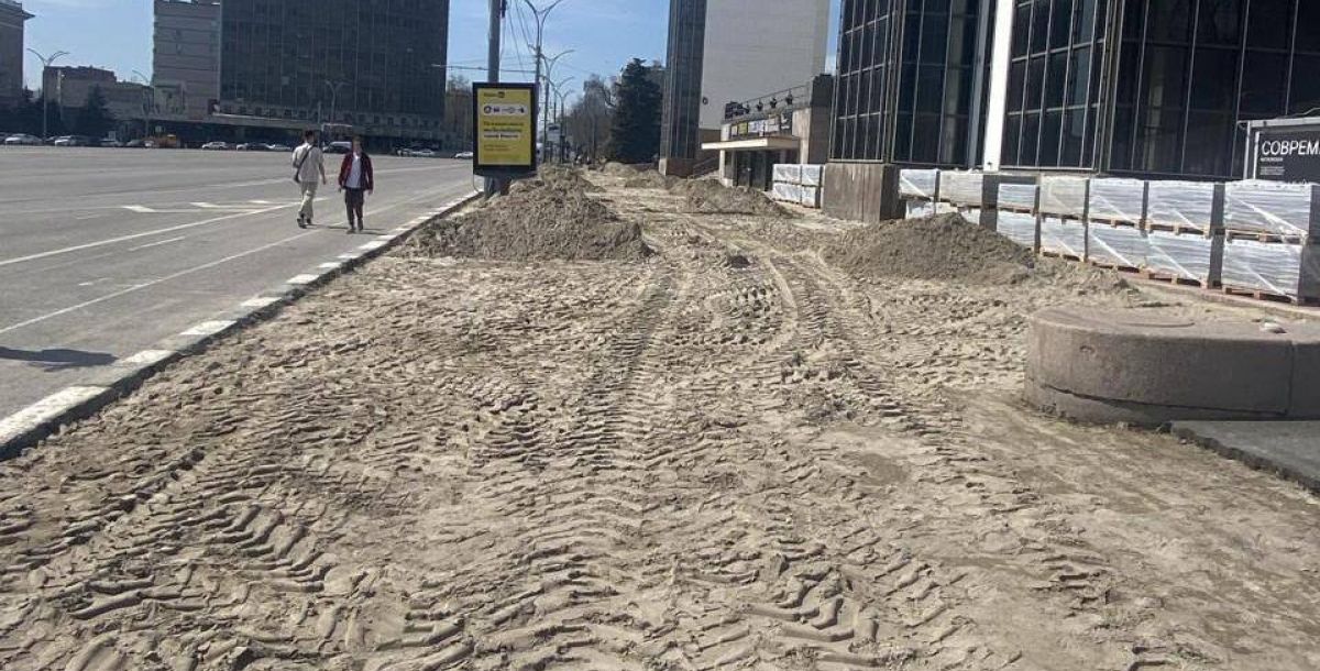 Обустроят тротуар на остановке транспорта на Театральной площади и вдоль парка Октябрьской революции. Работы вокруг театров должны быть завершены до 22 апреля.