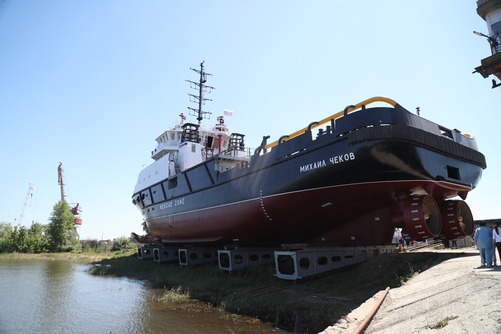 В Объединенной судостроительной корпорации сообщили о спуске на воду спасательно-буксирного судна «Михаил Чеков» проекта 22870, построенного по заказу Минобороны РФ.