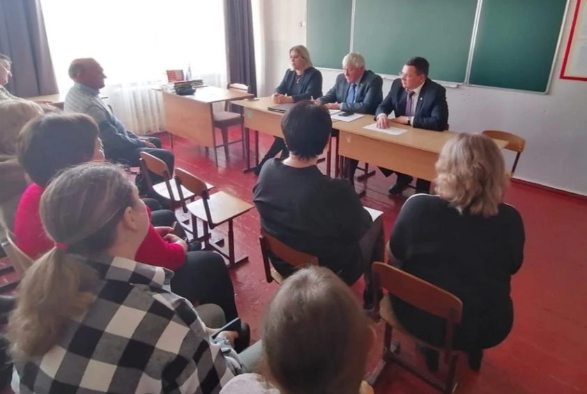 В присутствии руководителя и педагогического состава образовательного учреждения, глав районной администрации и администрации сельского поселения, исполняющего обязанности начальника отдела образования района, депутата представительного органа сельского поселения, представителя районной прокуратуры обсудили с членами родительского комитета вопрос о функционировании школы после проведения процесса реорганизации образовательных организаций района.
