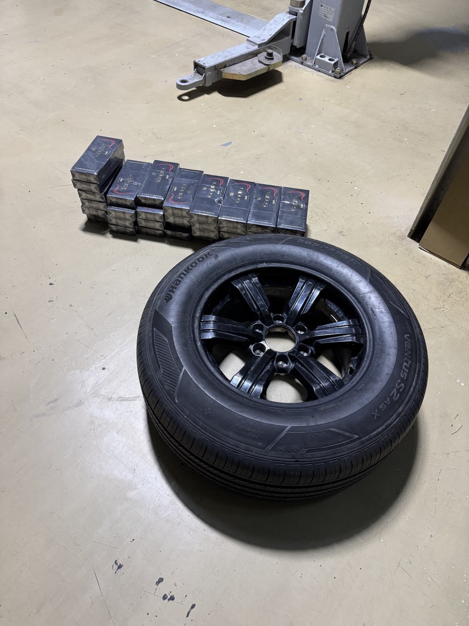 Иномарку направили на осмотр с применением МИДК, в результате в машине выявили посторонние вложения. На задней двери транспортного средства было прикреплено запасное колесо, демонтировав которое в полости шины таможенники обнаружили нелегальные сигареты.