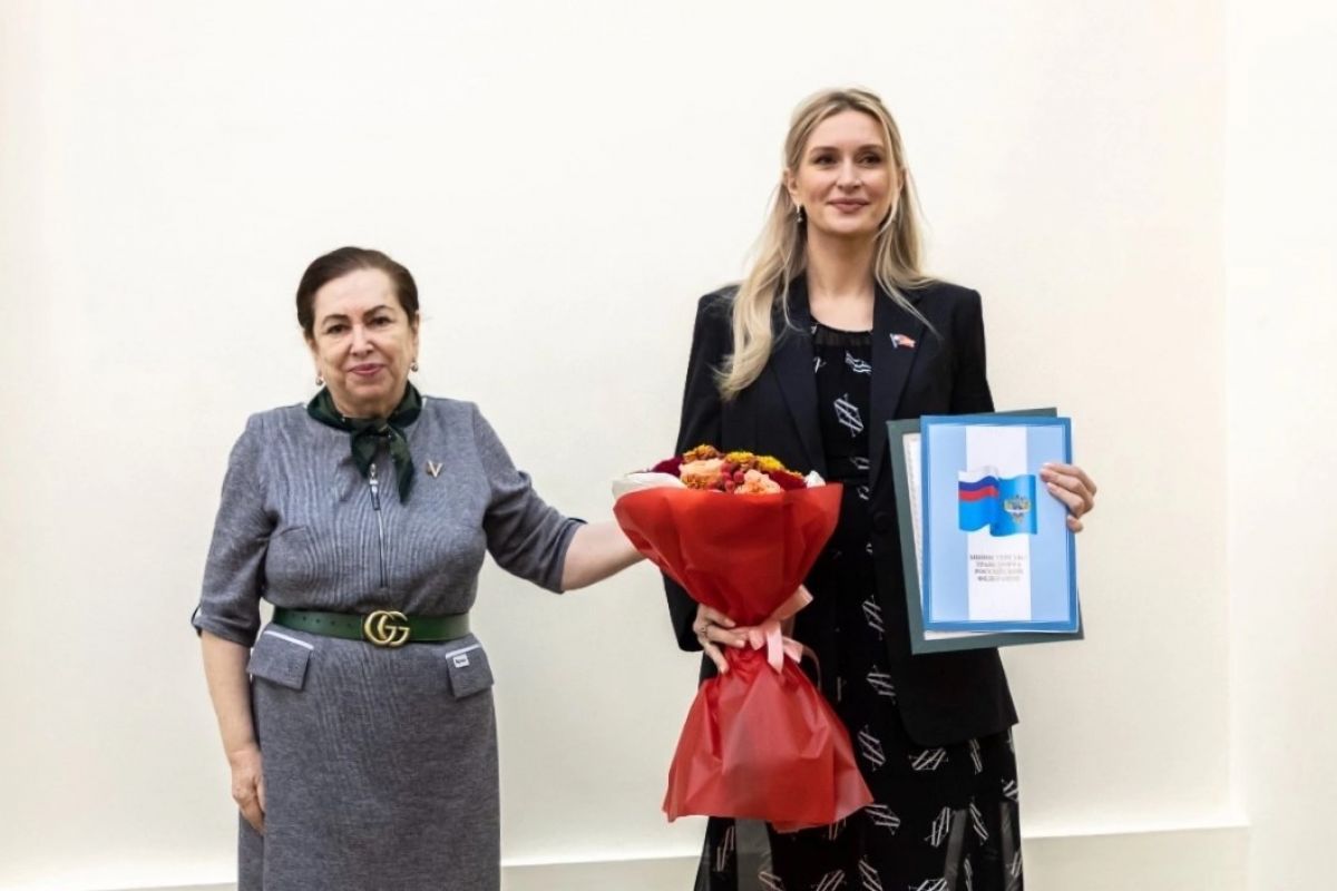 Ведомственную награду Минтранса Наталье Давыдовой, которая, напомним, является с депутатом Ростовской городской думы и секретарем районного отделения «Единой России», вручила председатель гордумы Зинаида Неярохина.