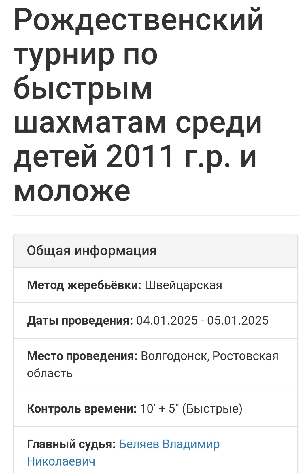 Отметим, что Федерация шахмат России уже зарегистрировала итоги вчерашнего соревнования. Играли дети. Уверенную победу одержал Роман Шам-Паша, выигравший все 9 партий. Марк Молчанов в итоговом протоколе был вторым. А Лев Шевцов — третьим. Всего в этом турнире сыграли 65 ребят. Главным арбитром был Владимир Николаевич Беляев. Другие подробности — в «Шахматы с «НВ»