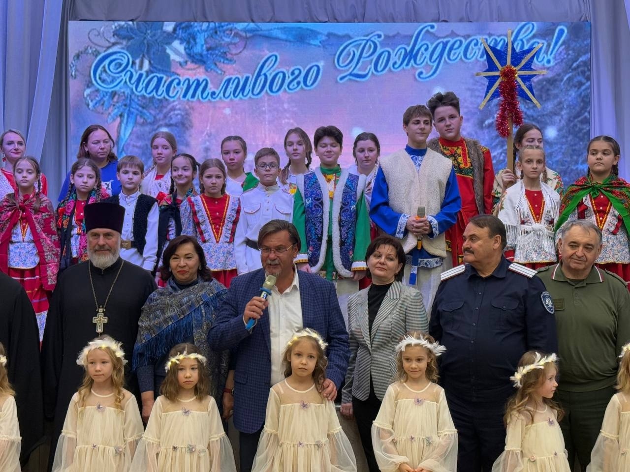 Детям и педагогам благодарность за представление выразили и другие почетные гости — представители духовенства, казачества, ЮФУ. Они поздравили всех присутствующих с Рождеством Христовым и Крещением. Пожелали ребятам рождественского чуда, мира и добра...