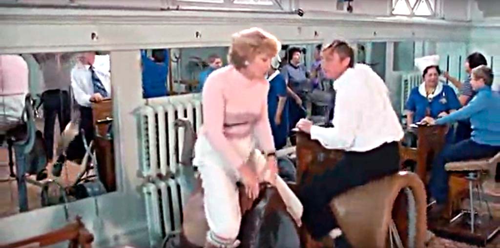 Рядом с сохранившимися до наших дней «верблюдом» и «лошадью» стоит аппарат с двумя дисками, призванными массировать область живота. Оказывается, такой точно тренажер был в гимнастическом зале «Титаника» – не киношного, а самого настоящего шикарного лайнера, затонувшего в ночь с 14 на 15 апреля 1912 года после столкновения с айсбергом.
