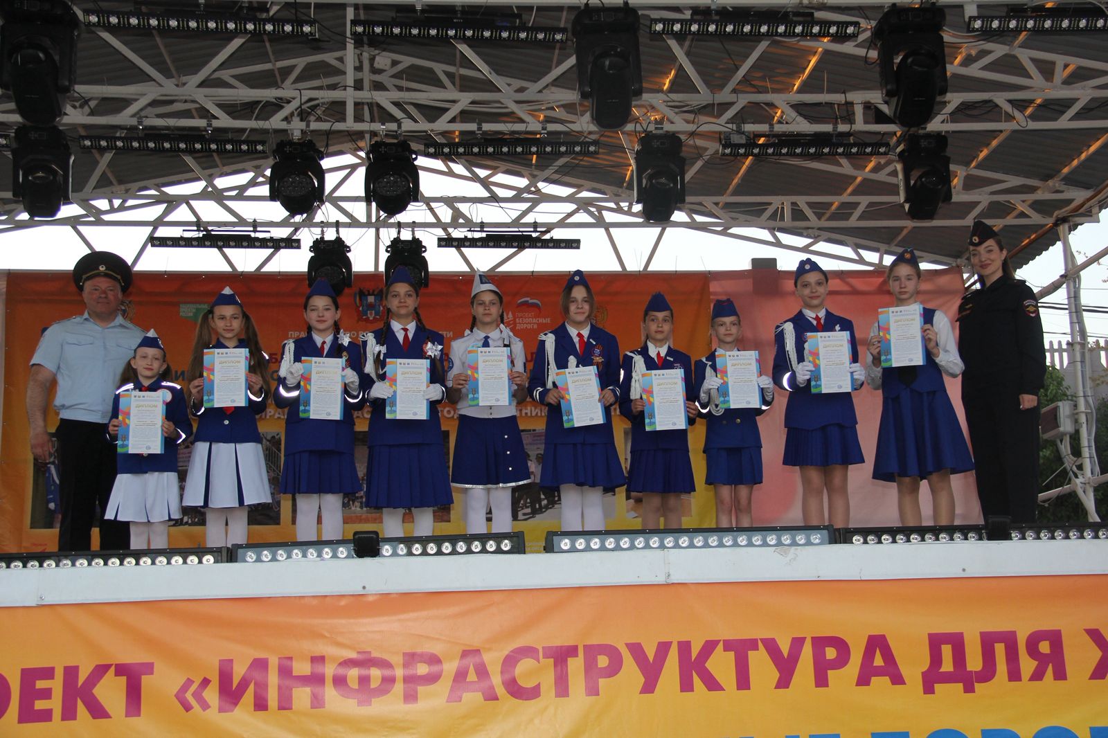 На первой торжественной линейке по подведению итогов, дипломы и грамоты вручили главный судья соревнований начальник отдела пропаганды региональной Госавтоинспекции подполковник полиции А.В.Мухин, зам.главного судьи старший инспектор по особым поручениям отдела пропаганды БДД региональной Госавтоинспекции майор полиции Е.С.Дынник и директор РРОДЮО "ЮИД ДОНА" полковник полиции в отставке Г.Е.Давыдова.