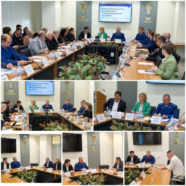Расскажем о том, как прошла анонсированная накануне рабочая встреча Южного транспортного прокурора Сергея Сафинова с руководителями Торгово-промышленной палаты Ростовской области (Светлана Абдулазизова), Ростовского областного отделения организации «ОПОРА РОССИИ» (Вадим Мирошниченко) и Уполномоченным по защите прав предпринимателей в Ростовской области (Олег Дереза), а также представителями хозяйствующих субъектов.