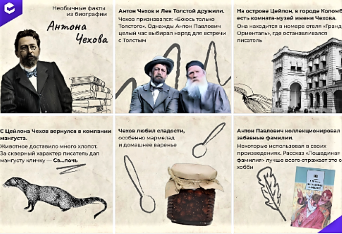 - В этой подборке — факты, которые перевернут ваше представление о Чехове, - отмечаютв Большекрепинской школе Родионово-Несветайского района. - Обязательно поделитесь с другом, пусть тоже удивится!