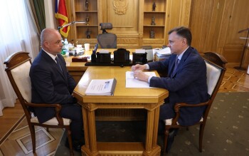 Юрий Слюсарь провел рабочую встречу с генерал-лейтенантом МВД Дмитрием Вельможко и предложил ему возглавить администрацию Волгодонска в качестве временно исполняющего обязанности главы города.