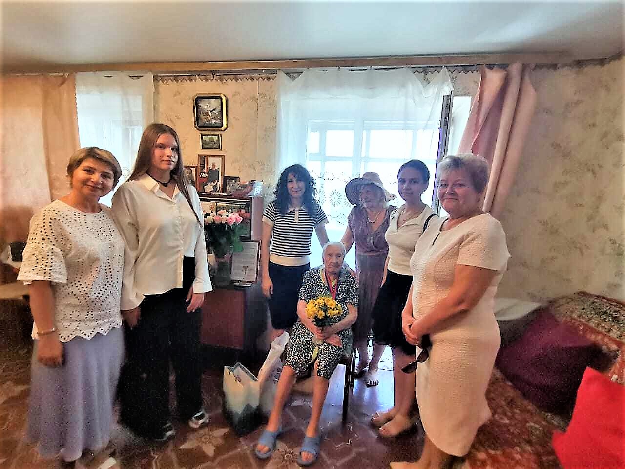 Ветерана поздравили сотрудники администрации района, Управления социальной защиты населения, активисты Советов ветеранов и молодежи Первомайского района.