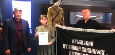 И вот в музее еще пополнение. От личного состава крымского атамана Бакланова казачьего полка первый командир подразделения — замкомандира ДШК Николай Дьяконов передал в Центральный музей российского казачества благодарственную грамоту, подписанную генерал-полковником Александром Галкиным.