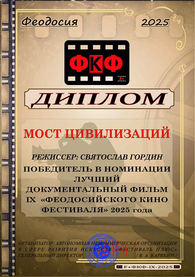 Число просмотров фильма, снятого для мультмедийного проекта «Крым: мост цивилизаций» в интернете превысило 1,5 миллиона. Премьера документального фильма на большом экране состоялась в Донской государственной публичной библиотеке. Над фильмом также работали оператор Сергей Перепелкин и популярный теле- и радиоведущий Владимир Добрицкий. Авторскую музыку к картине написал санкт-петербургский композитор Михаил Савичев.