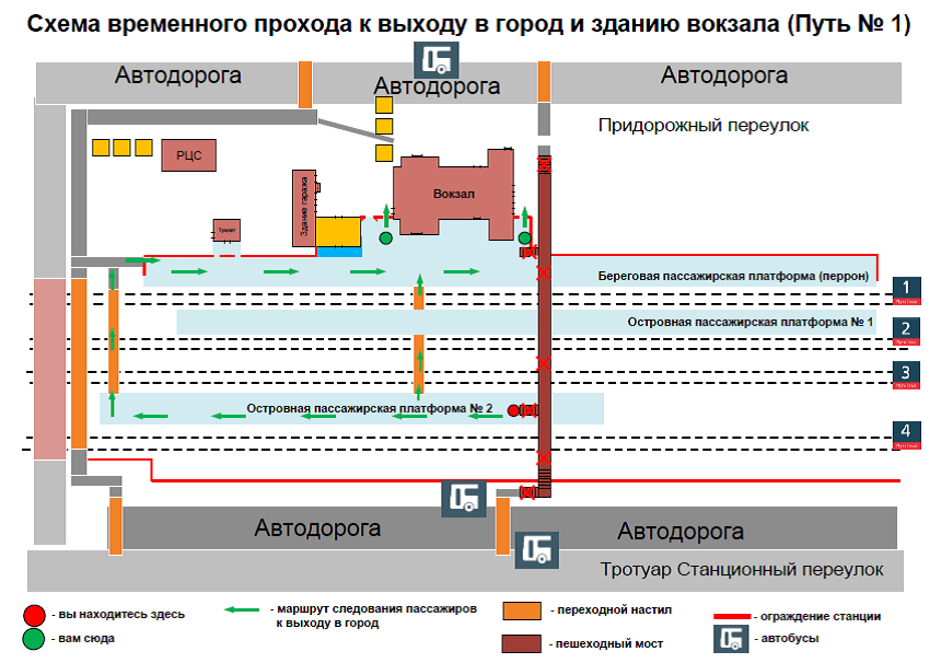 В службе корпоративных коммуникаций Северо-Кавказской железной дороги - филиала ОАО "РЖД", принося извинения за доставленные неудобства, пояснили, что проход на островную пассажирскую платформу можно осуществлять по пешеходным переходам (настилам) по временной схеме прохода.