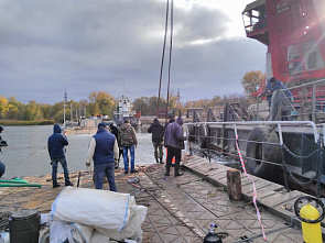 Одну из двух секций потонного моста в створе 29-ой линии,затонувших 4 ноября, подняли на поверхность.