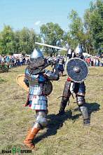 Над Миусом – ароматный дымок от костра на берегу. Женщина в старинном славянском платье хлопочет, готовя пищу в котелке. В шатре на столе – глиняная и деревянная посуда, на лавке еще одна славянка вышивает кошель. Под деревьями – группа крепких молодых мужчин надевает воинские доспехи: кольчуги, латы, шлемы…